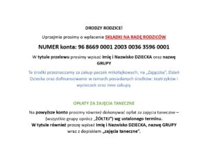 Kwestia „wyprawki dla przedszkolaka” zostanie uzgodniona na w/w zebraniu.
